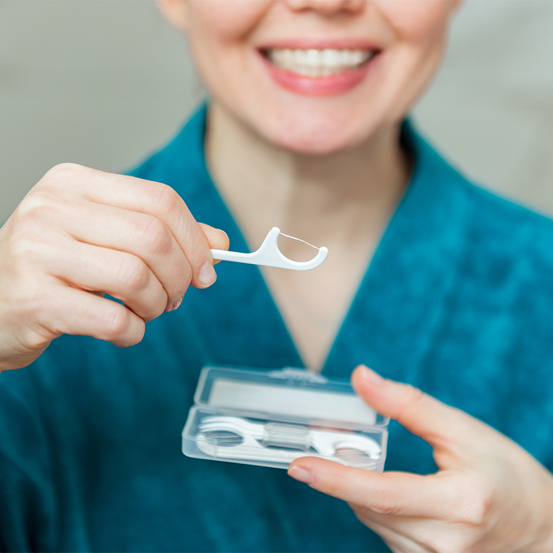 Šesť možností drôtu: nylon, PEFE, bavlna, PE, UHMWPE a drevené uhlie, vhodné pre štandardné zubné medzery, medzery medzi zámkami a citlivé ďasná.